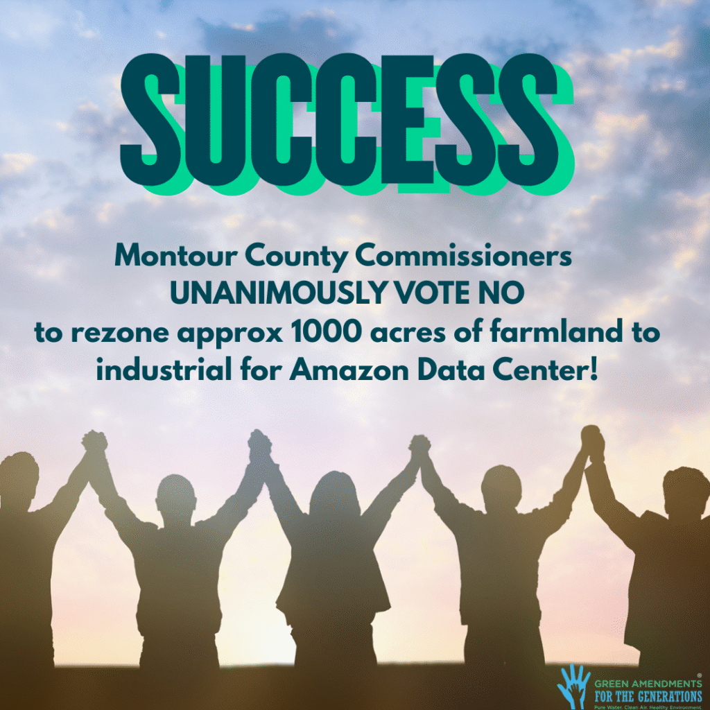 On February 10th, the Montour County Commissioners unanimously voted NO to rezone approx. 1000 acres of farmland to industrial to allow for a data center and powerplant proposal by Talen Energy and Amazon. Community member after community member described this battle as David vs. Goliath, and they couldn’t be more right. Pennsylvania’s Green Amendment, Article 1 Section 27, was mentioned several times at the earlier commissioners hearing in January.