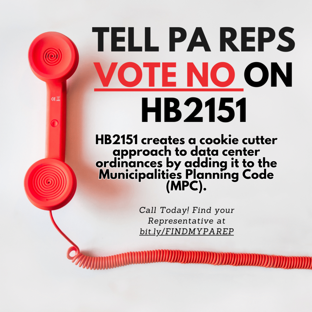 Pennsylvania legislators are considering a proposal to amend the state Municipalities Planning Code with a model zoning ordinance for data centers written by the industry friendly Department of Community & Economic Development. There are many concerns. Among them is that the ordinance will be designed to benefit data center developers rather than to protect communities and our environment.